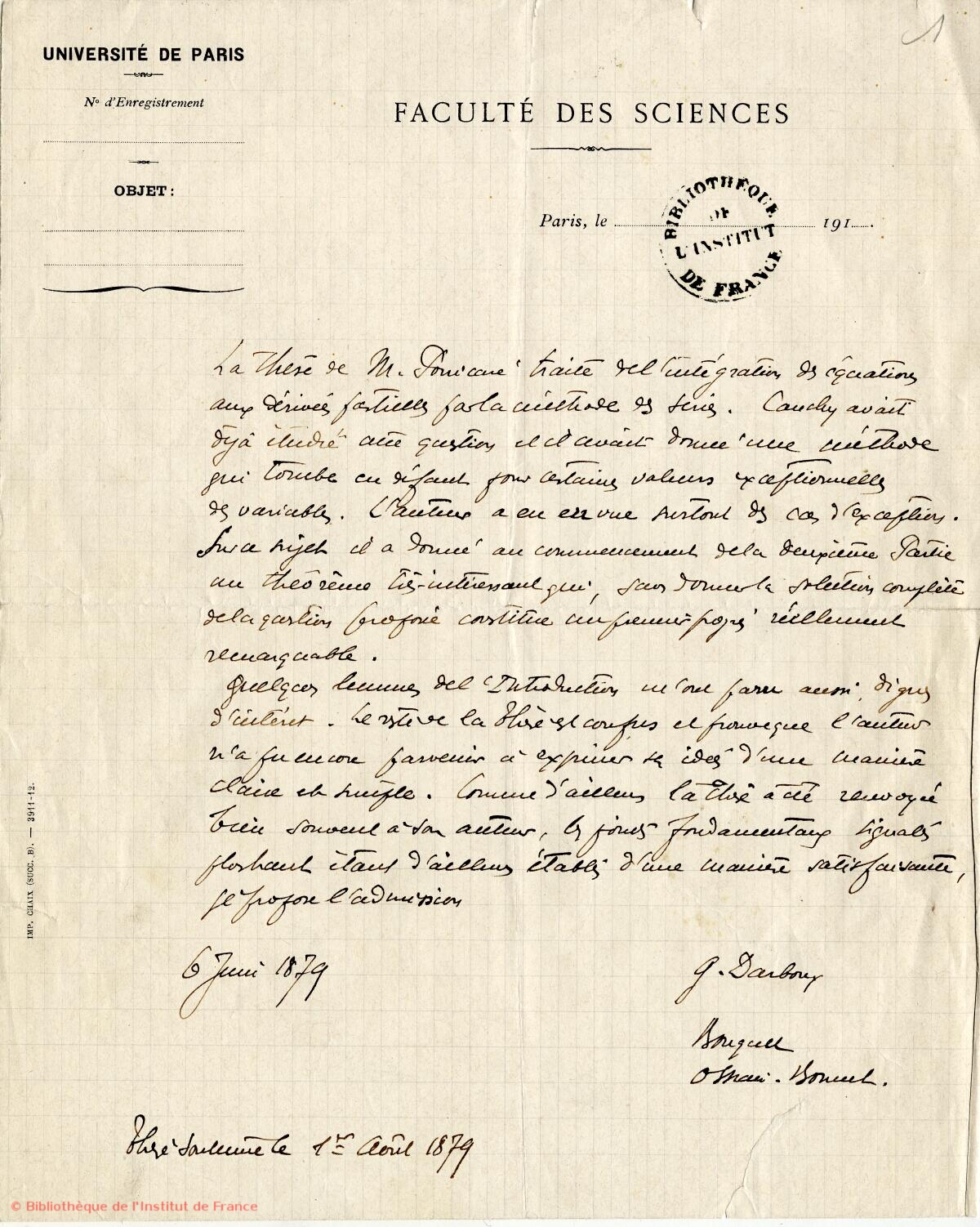 Exp : Darboux, Gaston Date: 1879-06-06